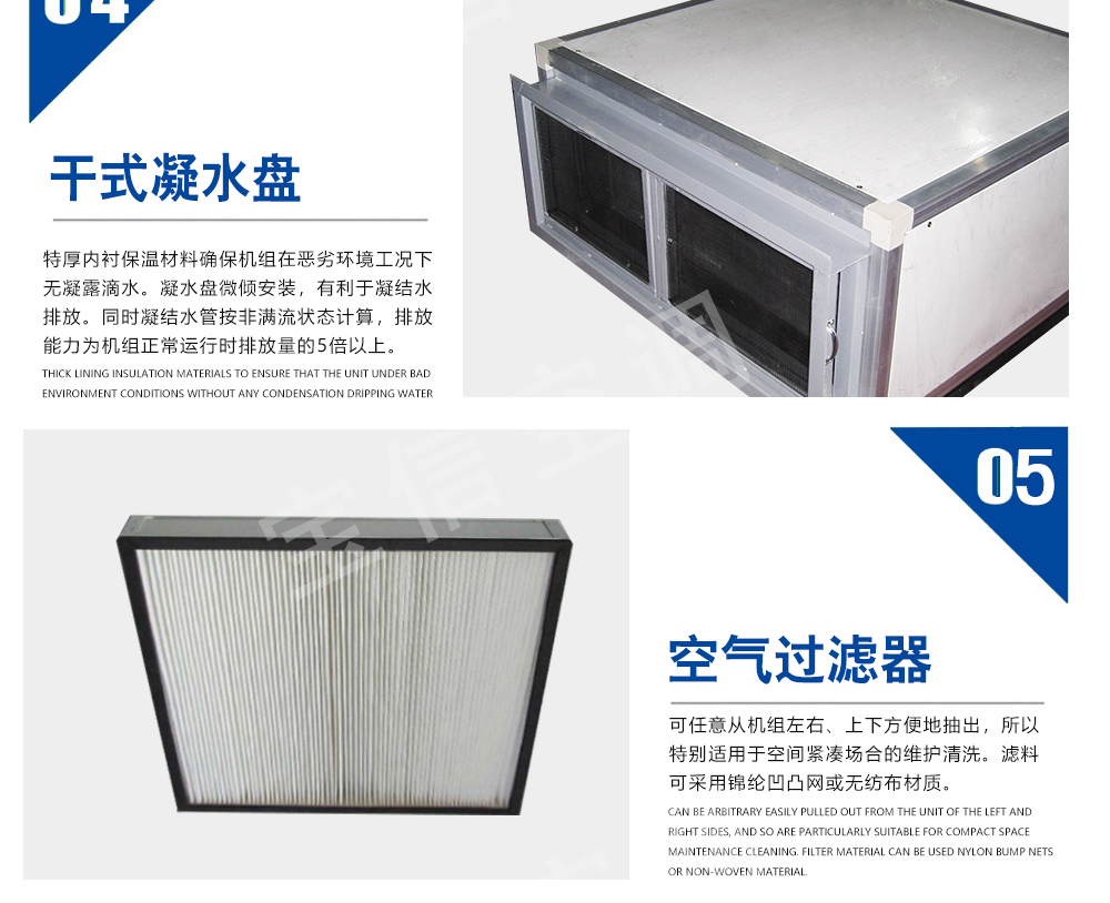 吊頂式新風機組是提供新鮮空氣的一種空氣調(diào)節(jié)設(shè)備。功能上按使用環(huán)境的要求可以達到恒溫恒濕或者單純提供新鮮空氣。工作原理是在室外抽取新鮮的空氣經(jīng)過除塵、除濕(或加濕)、降溫(或升溫)等處理后通過風機送到室內(nèi),在進入室內(nèi)空間時替換室內(nèi)原有的空氣。當然以上所提到的功能得根據(jù)使用環(huán)境的需求來定,功能越齊全造價越高。