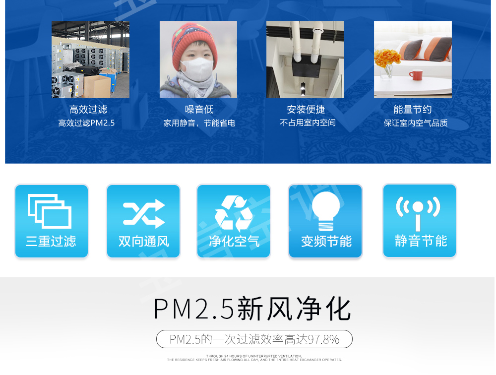 新風(fēng)機(jī)組是提供新鮮空氣的一種空氣調(diào)節(jié)設(shè)備。功能上按使用環(huán)境的要求可以達(dá)到恒溫恒濕或者單純提供新鮮空氣。工作原理是在室外抽取新鮮的空氣經(jīng)過(guò)除塵、除濕(或加濕)、降溫(或升溫)等處理后通過(guò)風(fēng)機(jī)送到室內(nèi),在進(jìn)入室內(nèi)空間時(shí)替換室內(nèi)原有的空氣。當(dāng)然以上所提到的功能得根據(jù)使用環(huán)境的需求來(lái)定,功能越齊全造價(jià)越高。