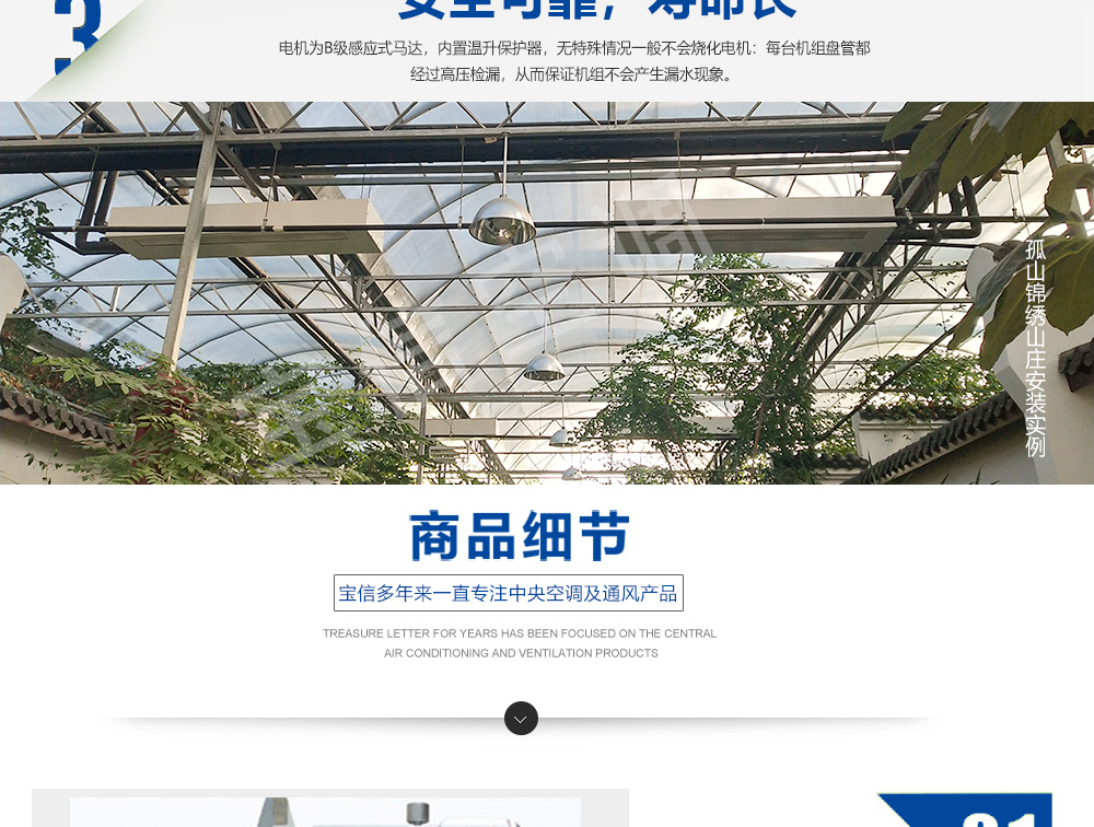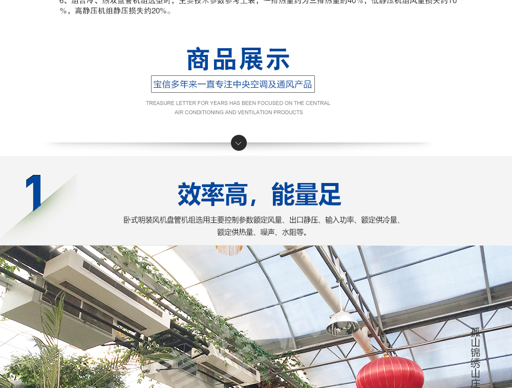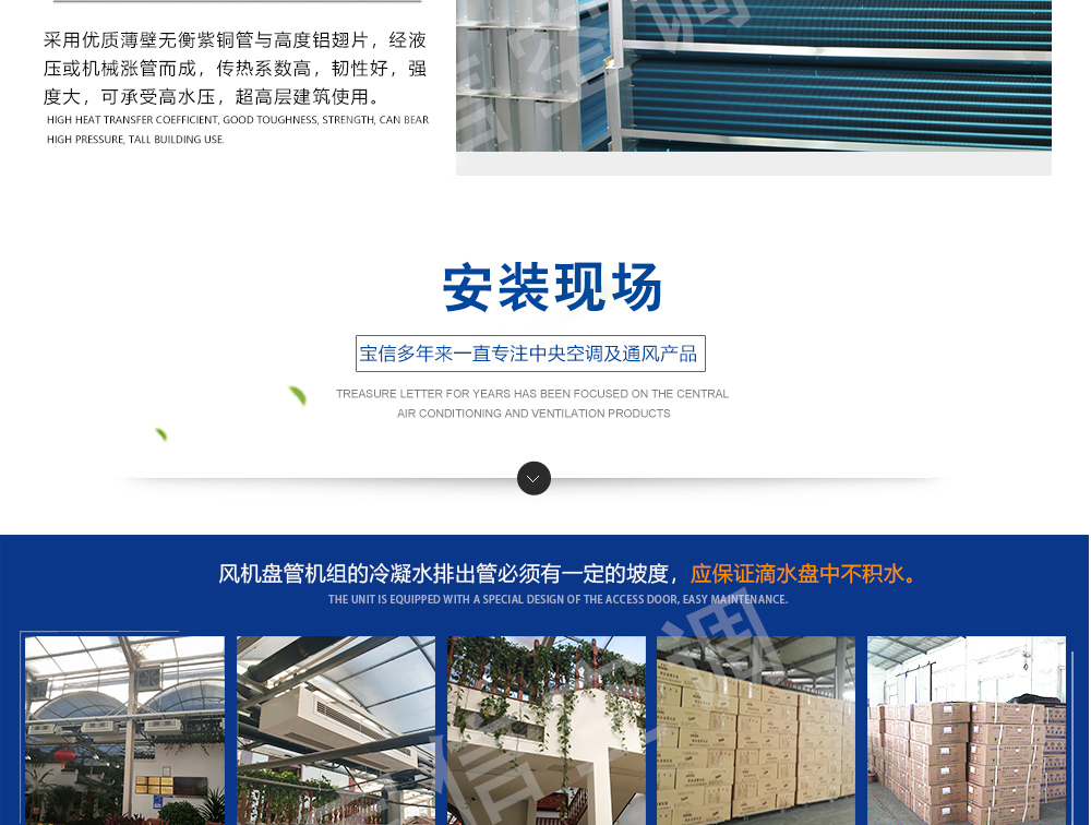FP系列風(fēng)機(jī)盤管機(jī)組吸收了國(guó)內(nèi)外同類產(chǎn)品的先進(jìn)強(qiáng)項(xiàng)技術(shù),依據(jù)國(guó)家相關(guān)標(biāo)準(zhǔn),并經(jīng)反復(fù)試制和測(cè)定,高效率的完成了一系列的技術(shù)設(shè)計(jì)改進(jìn),故而性能優(yōu)越、用途廣泛、品種齊全、效率高、故障少、噪聲低,其品種有臥式暗裝、臥式明裝、立式暗裝、立式明裝、卡式機(jī)組等系列,與新風(fēng)機(jī)組配套后廣泛應(yīng)用于賓館、醫(yī)院、辦公用房、高級(jí)會(huì)議廳、展覽廳等低噪聲場(chǎng)所,是集中式空調(diào)系統(tǒng)理想的末端裝置。