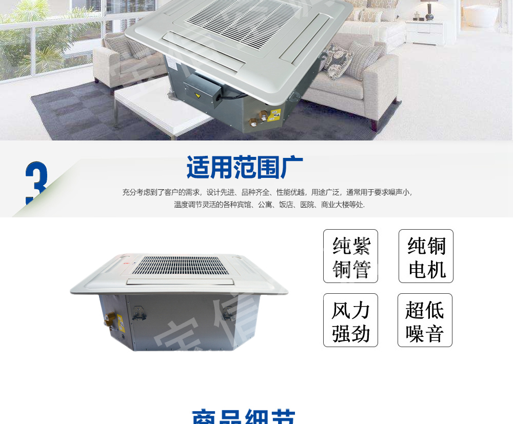 FP系列風(fēng)機(jī)盤(pán)管機(jī)組吸收了國(guó)內(nèi)外同類產(chǎn)品的先進(jìn)強(qiáng)項(xiàng)技術(shù),依據(jù)國(guó)家相關(guān)標(biāo)準(zhǔn),并經(jīng)反復(fù)試制和測(cè)定,高效率的完成了一系列的技術(shù)設(shè)計(jì)改進(jìn),故而性能優(yōu)越、用途廣泛、品種齊全、效率高、故障少、噪聲低,其品種有臥式暗裝、臥式明裝、立式暗裝、立式明裝、卡式機(jī)組等系列,與新風(fēng)機(jī)組配套后廣泛應(yīng)用于賓館、醫(yī)院、辦公用房、高級(jí)會(huì)議廳、展覽廳等低噪聲場(chǎng)所,是集中式空調(diào)系統(tǒng)理想的末端裝置。