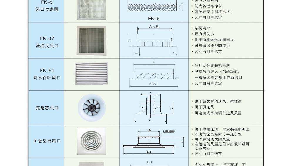 根據(jù)需要風(fēng)量[送風(fēng)或排(回)風(fēng)],在風(fēng)口頸部(或風(fēng)口進(jìn)出口斷面處)允許的風(fēng)速范圍內(nèi),確定所需風(fēng)口的尺寸。如按風(fēng)口風(fēng)速(一般為2~5m/s)確定風(fēng)口尺寸時(shí),應(yīng)考慮風(fēng)口的有效面積率(一般為30%~60%)。